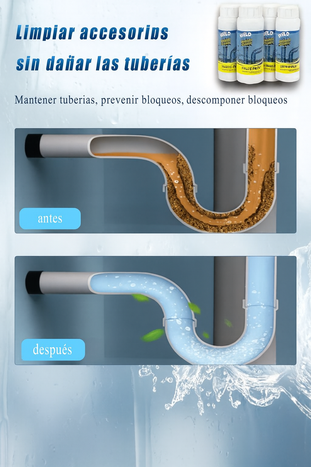 Sí. Su fórmula no contiene componentes corrosivos que dañen el PVC ni las juntas de metal. Es seguro para uso doméstico y compatible con la mayoría de los sistemas de drenaje.